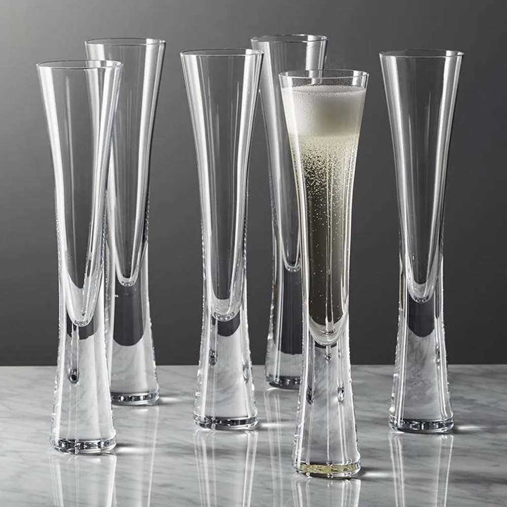 【Shaped Modern & Sleek】This champagne flute shape design is artistic and quite stunning. The eye-catching elegant shape is a really good conversation starter when your guests come around. The contemporary design of this champagne flutes add a stylish touch to your home or bar.
